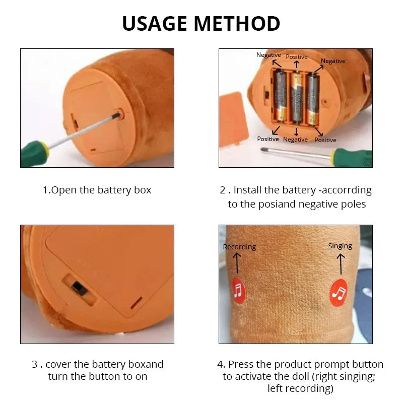 the plush will sway and sing songs! Since the doll contains electronic